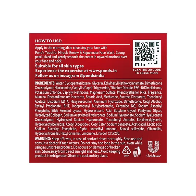POND’S Age Miracle Youthful Glow Day Cream SPF 18 PA++ contains ingredients that are proven to stimulate collagen production in the skin.