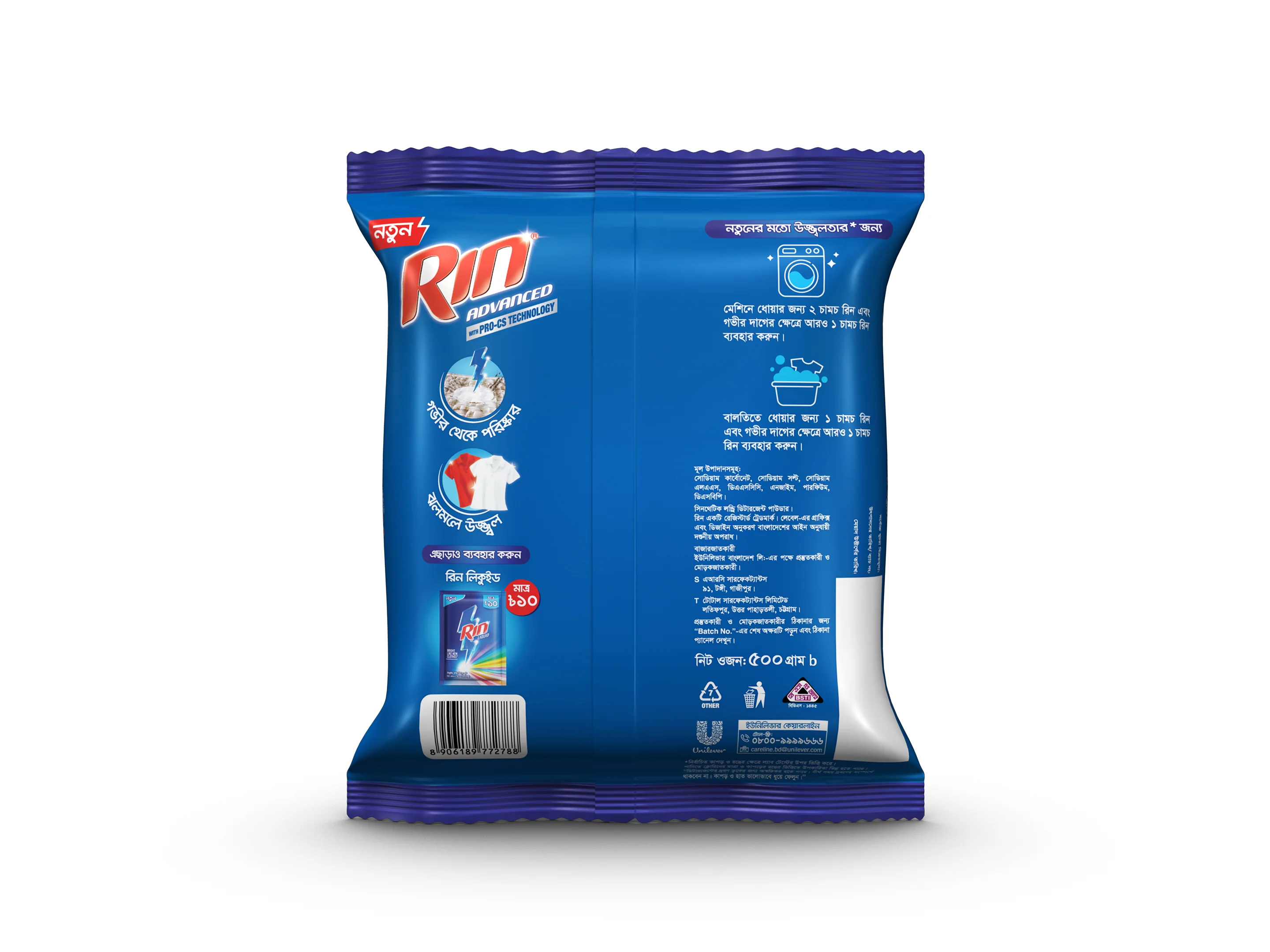 Get clothes that shine 2x brighter with Rin Washing Powder. Its advanced Bright Lock Technology gives 2x more brightness than ordinary detergent. Rin Advanced, gives 2x brightness!