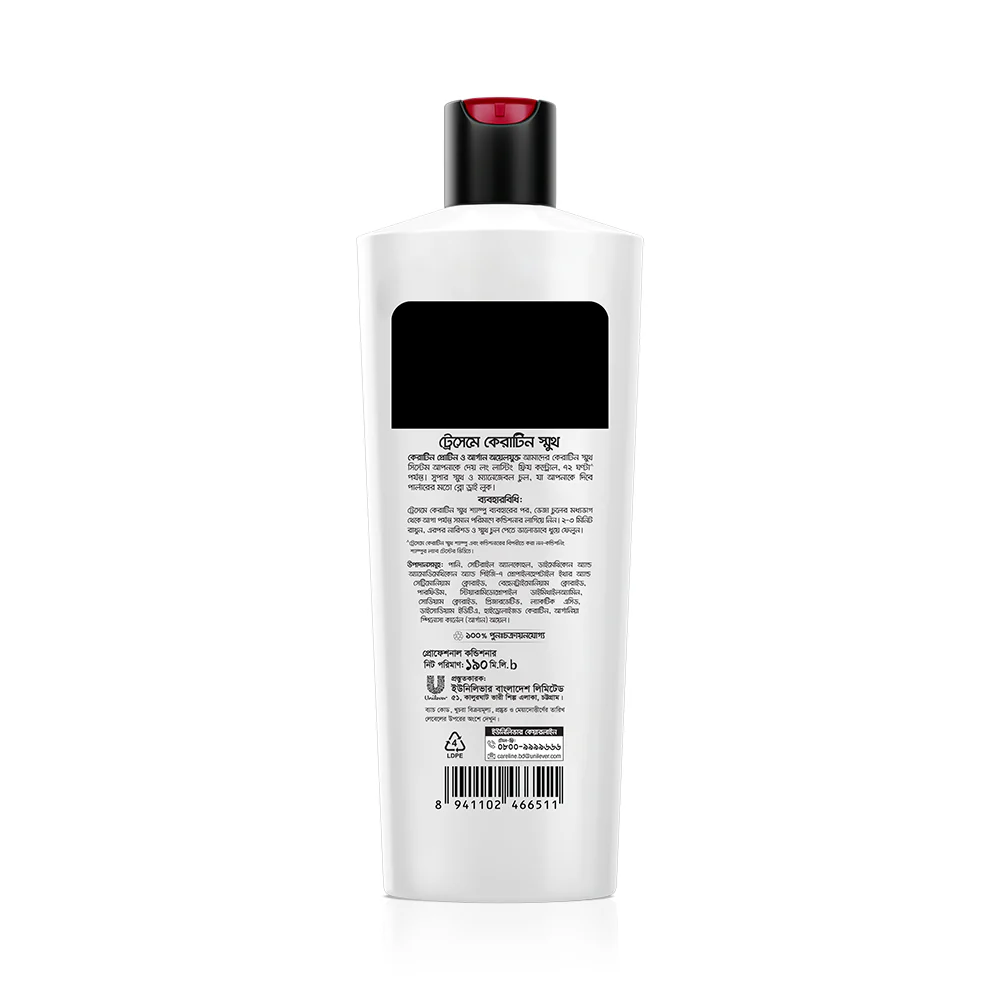 Launched in 1947, TRESemmé was named after renowned hair care expert Edna Emmé. Up until the 1950's, TRESemmé was sold only in salons. Today it is available at a shop near you, so that you can have salon style hair at home. For over 60 years, TRESemmé has built a history of success in 13 countries around the world. From its origins in 1947 and salon expertise, TRESemme has been driven by a simple truth: every woman deserves to look & feel fabulous, like she has just stepped out of the salon, everyday. This range has been carefully selected for its advanced formula. Driven by our salon heritage, we work with our stylists to deliver exper solutions from salon quality products without the salon price tag. Our salon inspired products enriched with high quality ingredients help you experience that salon feeling, everyday. Specially formulated with lower sulfates, TRESemme Keratin Smooth Shampoo helps restore keratin and nourishes each strand to leave hair gorgeously straighter, shinier and more manageable. When used together with Keratin Smooth Conditioner, it controls frizz for up to 48 hours and transforms your hair to be gorgeously straighter, more manageable and easy to style. Apply to wet hair, gently massage and work into a lather. For best results use after shampooing with TRESemme Keratin Smooth Shampoo.Start Shopping Now!